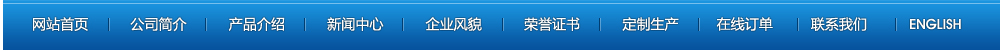 網(wǎng)站首頁 | 公司簡介 | 產(chǎn)品介紹 | 新聞中心 | 企業(yè)風(fēng)貌 | 榮譽(yù)證書 | 定制產(chǎn)品 | 在線訂單 | 聯(lián)系我們 | ENGLISH 【后臺管理】